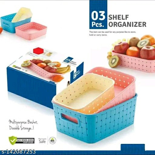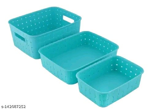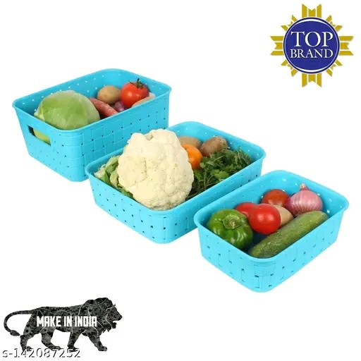 Name: 3 Pc Storage Basket For Fruits, Vegetables,Magazines, Cosmetics etc Storage Basket Basket For Kitchen Use (Blue Colour)
