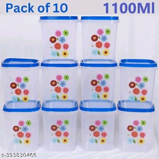 Name: Square Plastic Kitchen Storage Food Container, Plastic Grocery Container, Snacks Container, Fridge Storage, Food Containers, Pickle Jar Container Blue Cap (1000ml Pack Of 10)