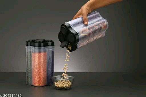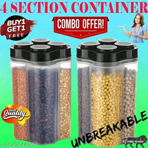 Name: Airtight Transparent Plastic Lock Food Storage 4 Section Container Jar for Grocery, Fridge Container & Containers, Kitchen Storage Box & Container Set (Pack Of 2) (Black)