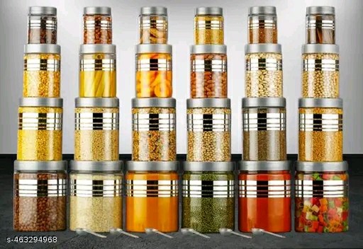 Name: Premium 24-Piece Line Printed Storage Container Set with Spoons | BPA-Free Airtight Containers | Silver-Clear Kitchen Organizer | Plastic Container pack of 24 (4 Piece-1200ml , 4 Piece - 650ml , 4 Piece -350ml , 4 piece - 250ml