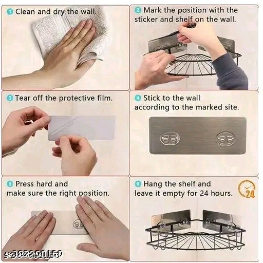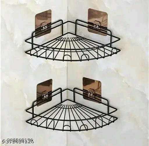 Name: (Pack Of 2) Self-Adhesive Metal Kitchen and Bathroom Corner Rack Storage Shelves Shelf Organizer Storage Stainless Steel Wall Shelf Corner-Black Bath Shelves