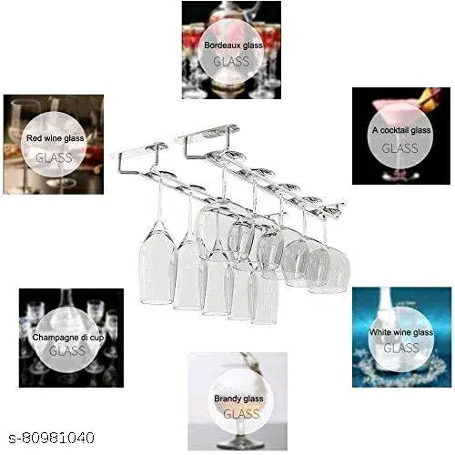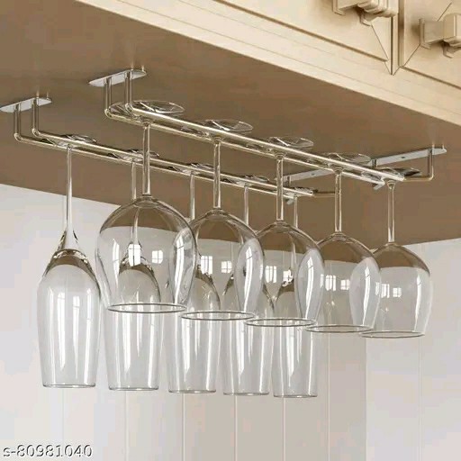 WINE GLASS HANGING HOLDER, Chrome Finish, Stainless Steel wine glass rack holder (100% NOT BRASS ), Extra Strong Body. Bring New Function to Your Existing Cabinetry and Bar Storage to Entertain Like a Professional. Works Great in the Kitchen, Dining Room, Bar, or Anywhere You Have an Overhang. Fragile Protection: This versatile storage rack can hold a variety of glass and is great for entertaining. Store and protect your delicate wine glass. champagne flutes, and other glassware with this hanging stemware rack. You can mount this rack under any credenza, hutch, buffet, shelvin